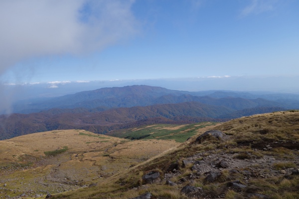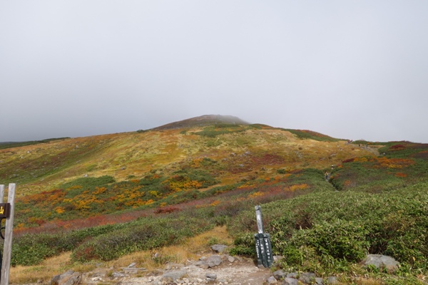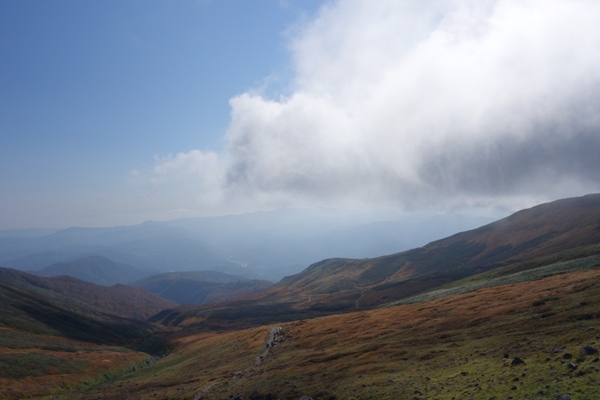 月山山頂を振り返る。 山頂にいたときにこの青空なら鳥海山も見れたかな。。。 |