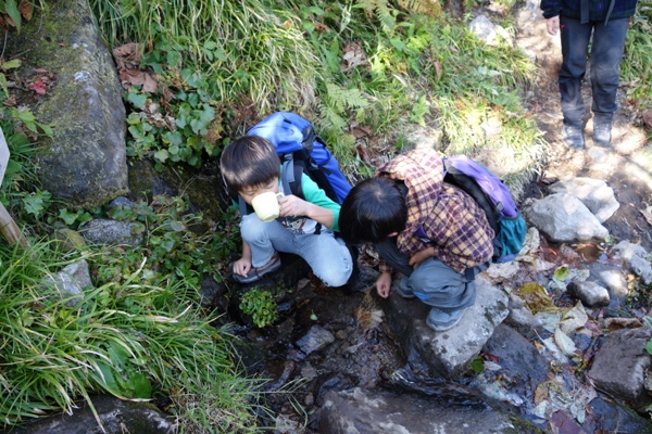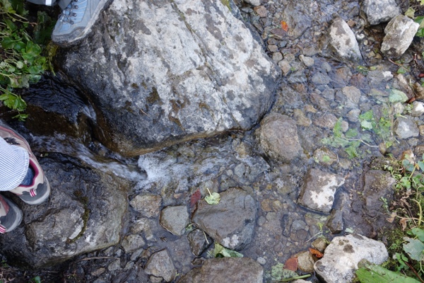 水場。すごい勢いで水が出ていた。 この後も立て続けに数か所。 |