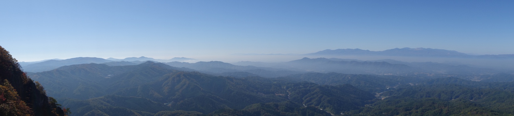岩をくぐると大パノラマ。 遠くに那須連峰も見えた。 まだ雪はないね。 |