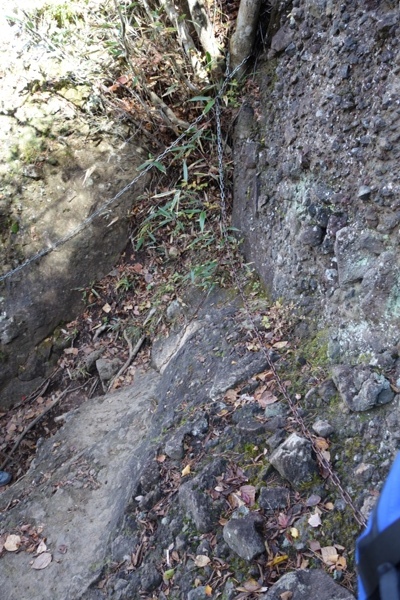 岩がせり出した道。 いろんなところに大きな岩が転がってて楽しい。 |