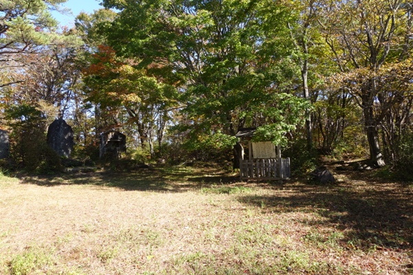 霊山城跡到着。 明るい広場になっていて昼食を食べている方がいました。 |