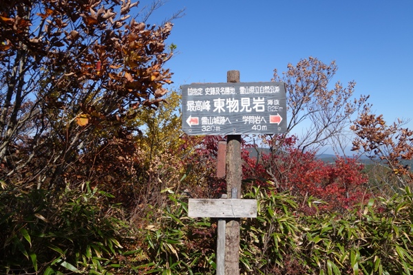 最高峰の東物見岩、825mに到着。 岩と言ってもそれなりに広い。 |