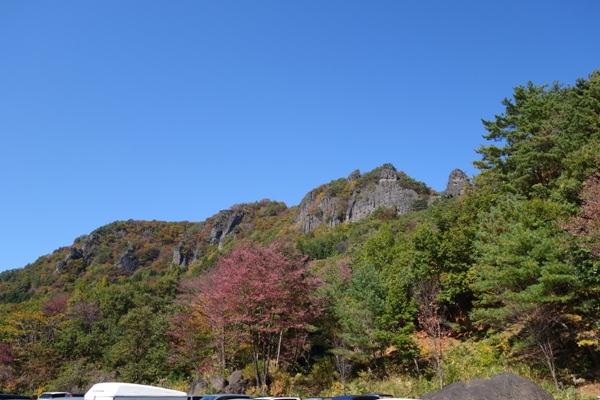9時40分頃、駐車場到着。 素晴らしい天気。 紅葉も始まってます。 |