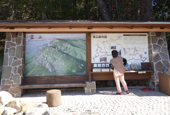 駐車場にある案内板。 案内板横に登山者記録帳や登山マップが置かれていた。 ハイキングに来ている方多数、人気の山で整備も手厚い。 |