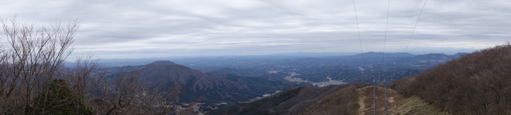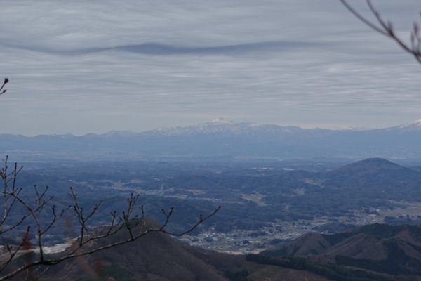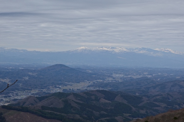 残雪や鎖場に”聞いてないよー”とお怒り気味の嫁さんの心を癒す景色。 安達太良連峰の奥に霞みながらあった真っ白な山は飯豊かな? まだまだ福島の山は雪山だねー。 |
