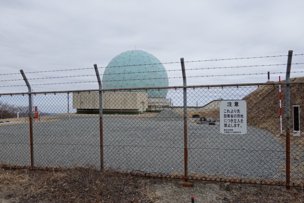 山頂の自衛隊レーダー基地到着。 何かの動く音でちとうるさい。 |