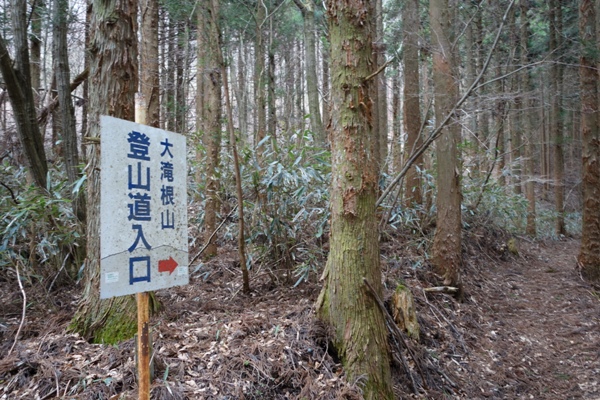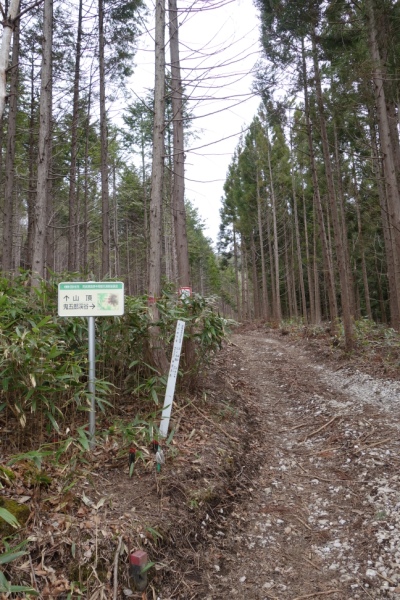 車道に帰還。 この登山道の看板の横に数台分の駐車スペース有。 |