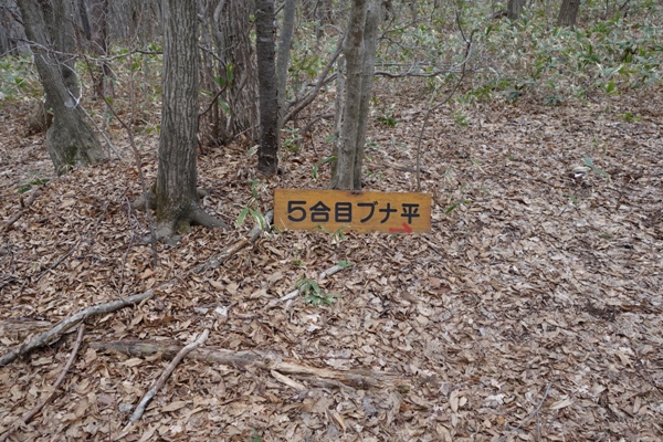 日山権現ルートの分岐が見つけられずブナ平に到着。 ここからあだたら高原ホテルへ抜ける道があるはずだったのだがその道も見つけられず。 |