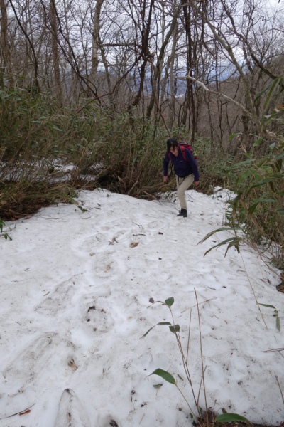 下山は仙台平方面へ。 霧島権現ルートよりなだらかで歩きやすい。 上部は残雪も少々。 |