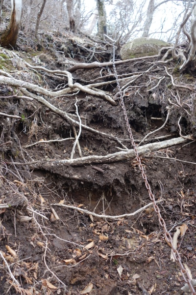 昼食は山頂からちょっと下ったところで。 5年前に利用した高塚高原キャンプ場につながっている道。 こんなに近いとは知らなかった。 |