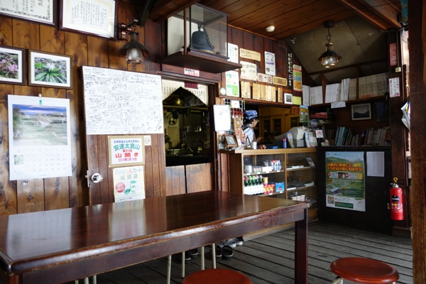 趣のある小屋の中。 去年売り切れで買えなかった山バッチもゲット。 |