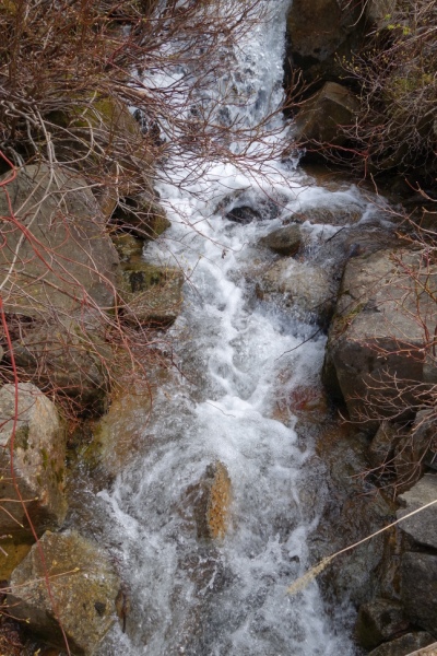 雪解け水、すごい勢いで流れてた。 |