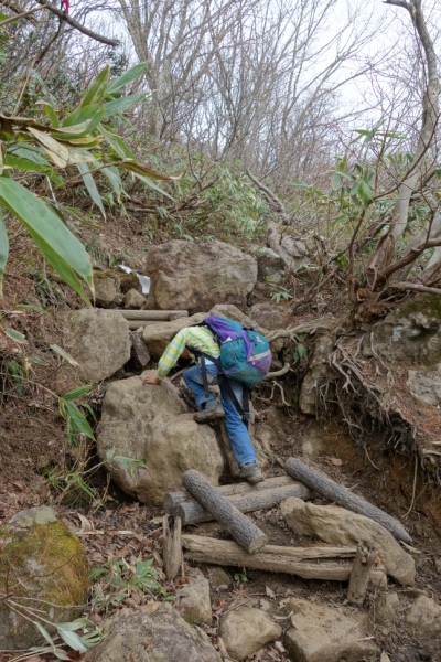 旧道でショートカット。 雨がぱらぱら落ちてきたので急いで下山。 |