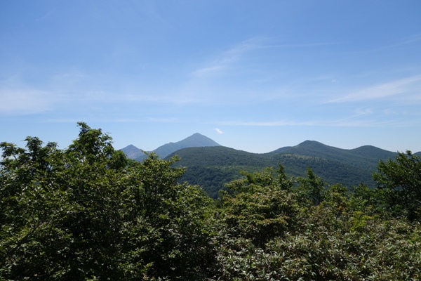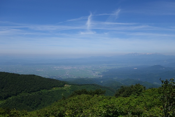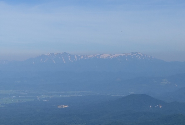 その奥にそびえる飯豊連峰〜ひときわ雄大ですなー。 |