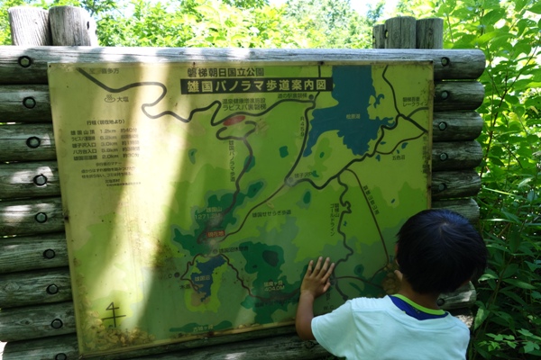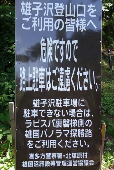 トラブルの元凶はこの看板のところが分岐点になっていることに気付かず、先行した自分たちが雄国沼に向かったことと、“雄国沼”に行くところを“雄国山”に向かってしまった嫁さんそれぞれのミス。 持ってた地図に雄国山へのルートがなく油断しました。。 |