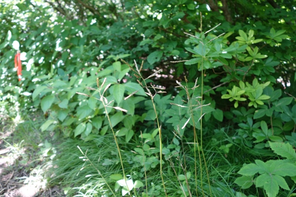 看板横にあったのが笹の花らしい。 これが咲くと周りのササが枯れるんだと監察員の方が言われていた。 |