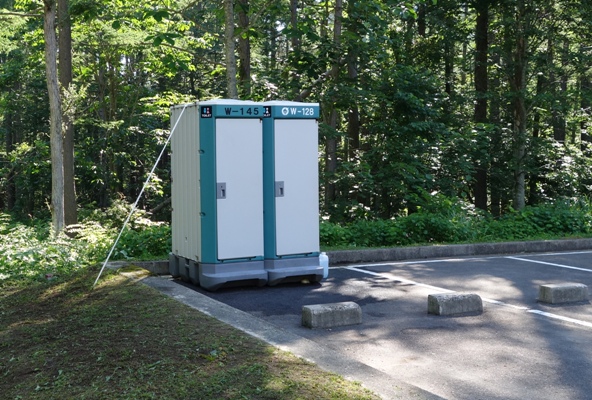 駐車場横に簡易トイレも設置されています。 |