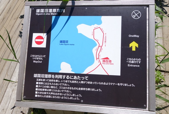 雄国沼湿原の木道は一方通行。 |