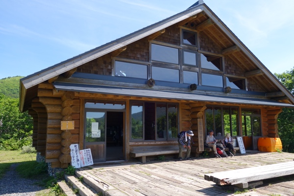雄国沼休憩舎到着。 快晴でいい気持ち。 |