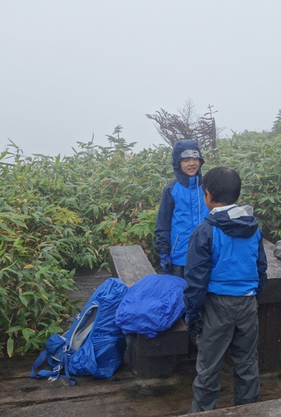 雨が降り始めたので雨具装着。 今年は雨に降られてなかったんですが、会津駒は鬼門のようです。 |