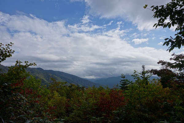 だいぶ下山したところで、さわやかな秋の空。。。 山深さを感じる景色。 |