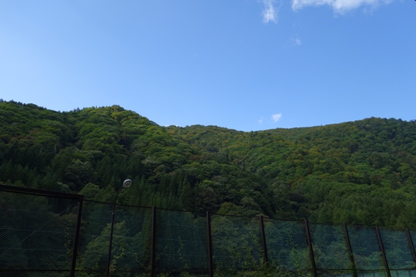 グラウンド横の駐車場に戻ると真っ青な空が広がっておりました。 下山すると青空、山あるあるですかね(笑)。 |