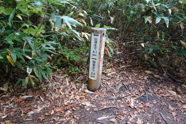 山頂まであと4.1q〜なぜこの距離で標識? |