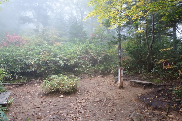ベンチ、晴れてたら展望あるのかな? 30~40分いましたが、天気が悪いせいか中門岳に向かう人もほとんど見かけませんでした。 |