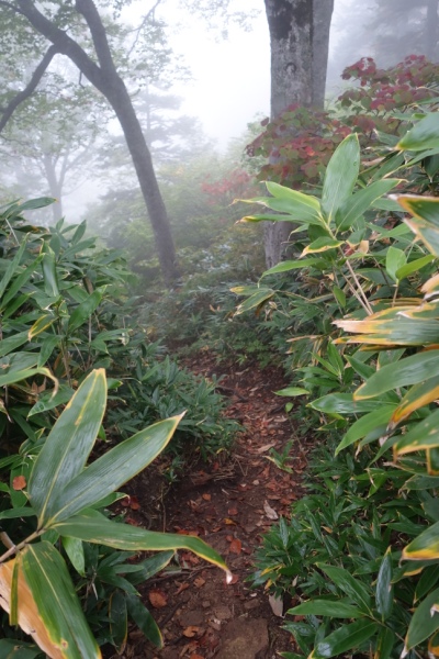 もう少し天気の回復が早かったらと思いつつ、さらに林の中を歩いて下山。 |
