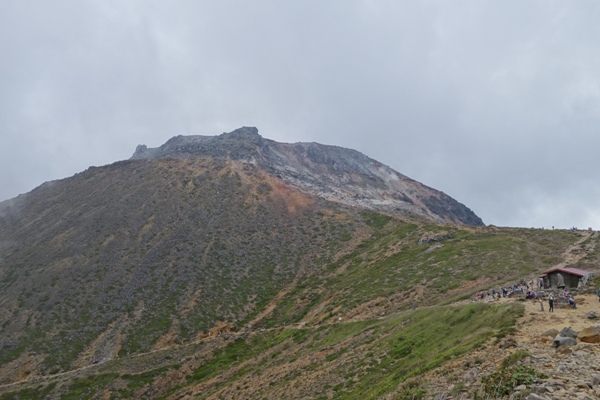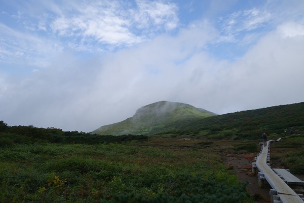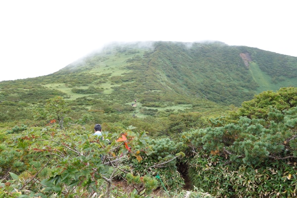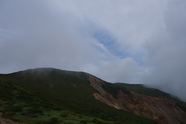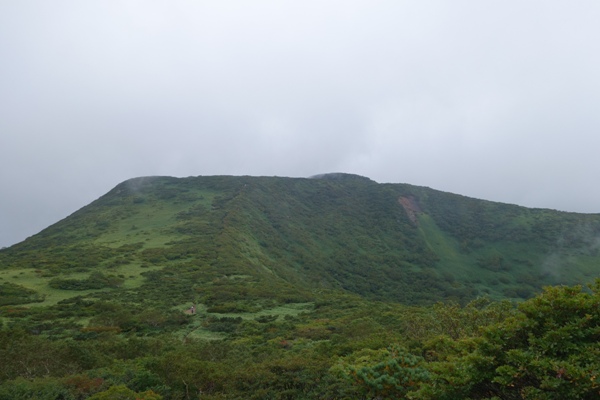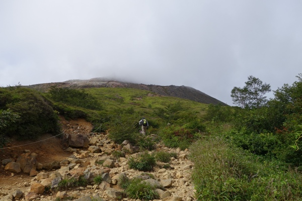 茶臼岳は雲の中。 登山道がはっきり見えますねー。 |