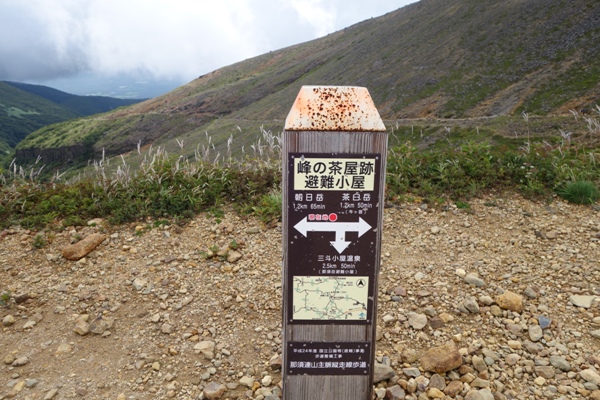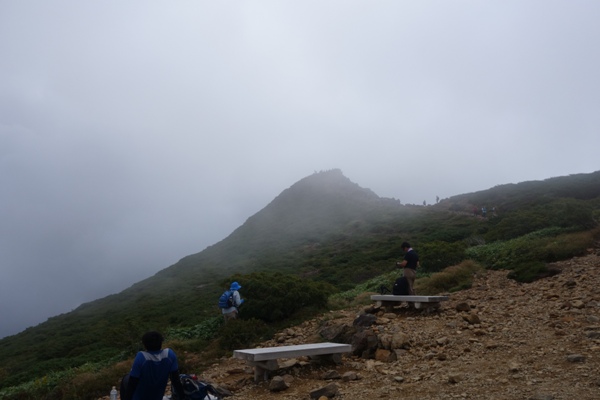 朝日岳の肩。 ベンチがあり休憩できます。 |