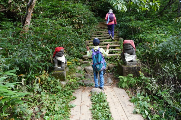石畳の道を歩きます。 下の駐車場から歩き始めたのに文句も言わず素直に歩く子供達、どうした? |