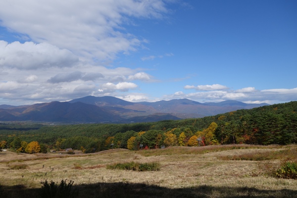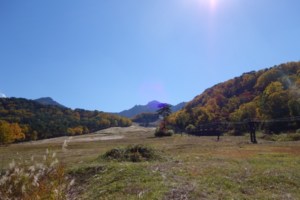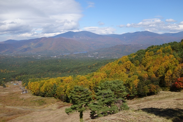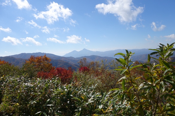 吾妻連峰も一望、紅葉と青空と吾妻山〜いい眺めです。 |