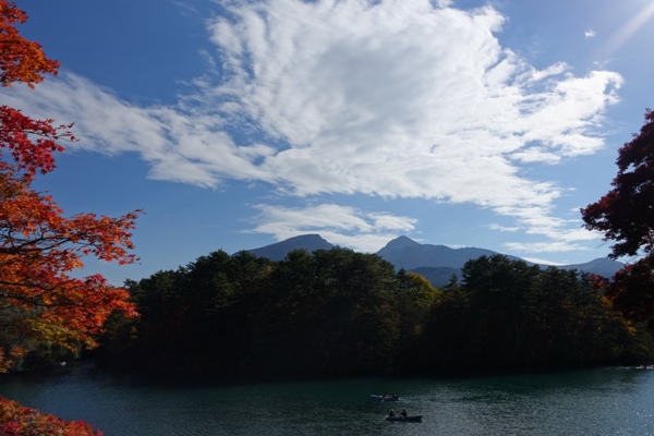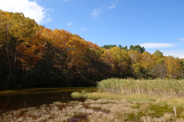 銅沼全景。 人はまばらで静かに紅葉を楽しめます。 |