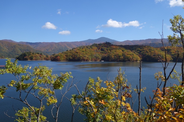 少し登ると桧原湖が見えてきます。 |