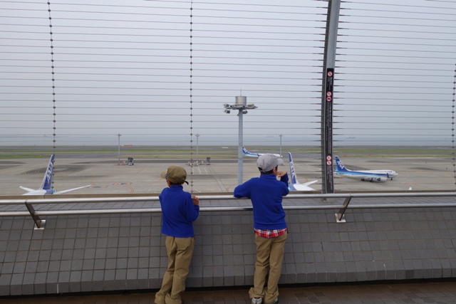 羽田空港で飛行機の搭乗待ち。福島空港と違ってひっきりなしに離着陸しています。 |
