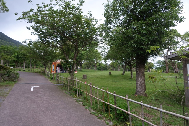 かいもん山麓ふれあい公園の駐車場に到着。 この下にも登山者用の駐車場がありましたが、天気が悪いこともあってかガラガラでした。 車中泊は有料との看板がありました。 |