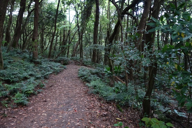 出だしは登山道というより、林の中の遊歩道みたいな感じでした。 |