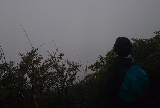 開聞岳までもうすぐです。 この時は雲に隠れているのは頭だけでした。 |