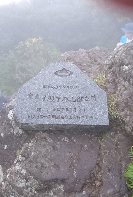 皇太子さま登頂の石碑。 |