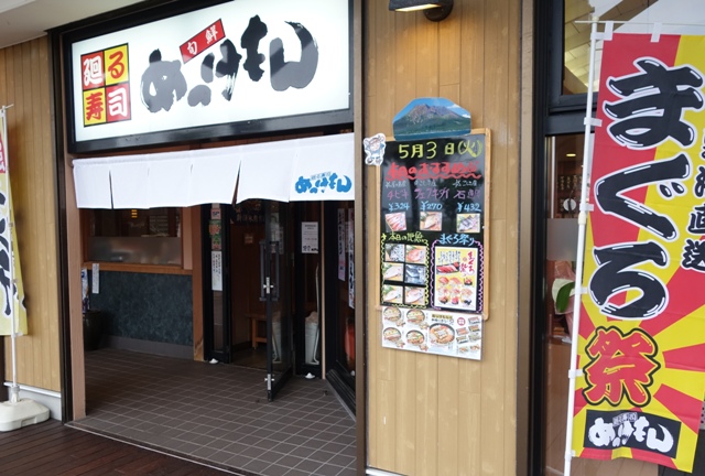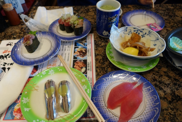 鹿児島市内まで戻り、回転寿司屋で遅い昼食です。 日頃見かけないネタが有って満喫。 地グロ美味しかった〜。 |