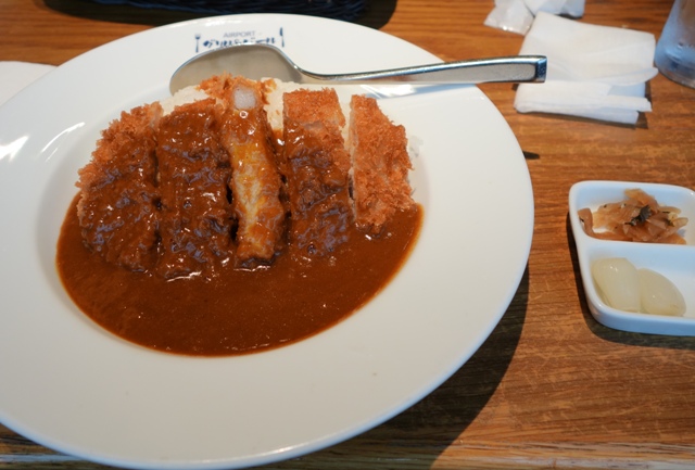 空港のレストランで夕食。私とリョンはカツカレー、嫁さんとユンはハンバーグでした。 |
