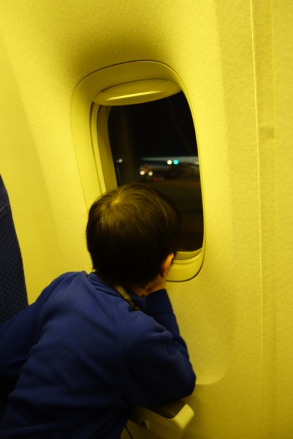 子供たちは初めての飛行機。“落ちない?”と心配していたユンも空の旅を楽しんだよう。 |