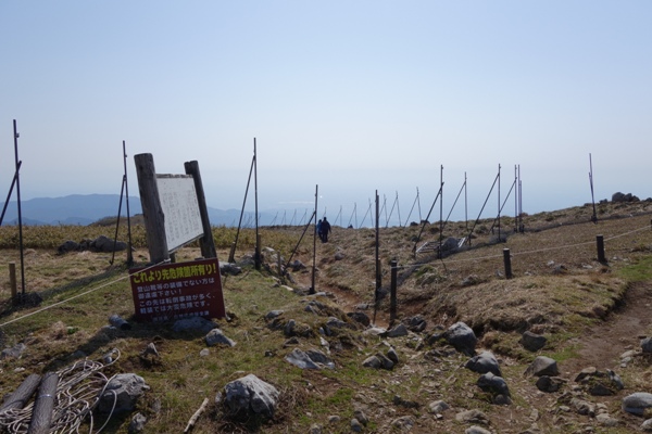 東登山道で帰ります。 脅しのような看板がありますが、ハイヒールでなければ大丈夫、ということでしょう。 |