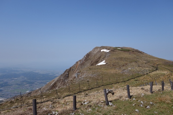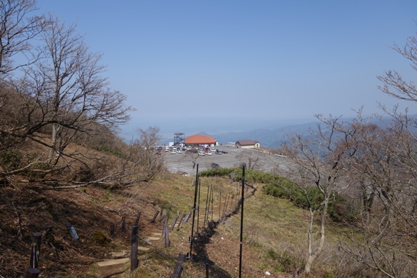 ワインディングロードを経て山頂駐車場到着。 雪が少しだけ残っていました。 |