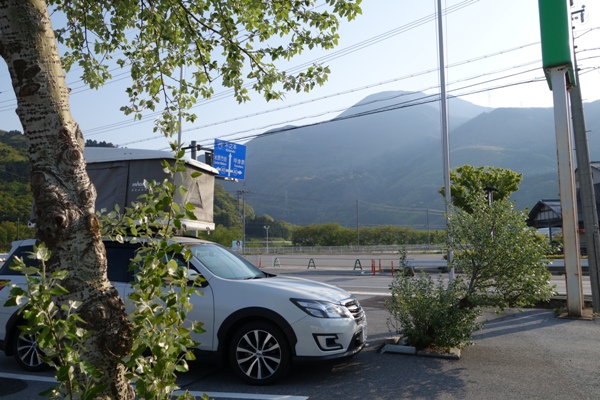 道の駅伊吹の里で車中泊。これから向かう伊吹山が見えています。 |