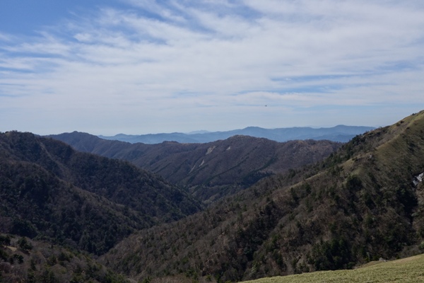 三嶺と塔丸の奥に見えるのが石鎚山・・・のはず。 どれなのか今一つ分からず。。。 |