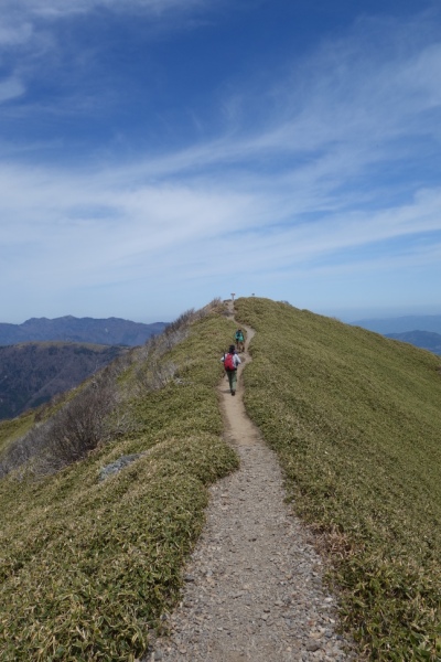 三嶺へ続く稜線〜かなり遠く見えます。 看板では16km。。。 |
