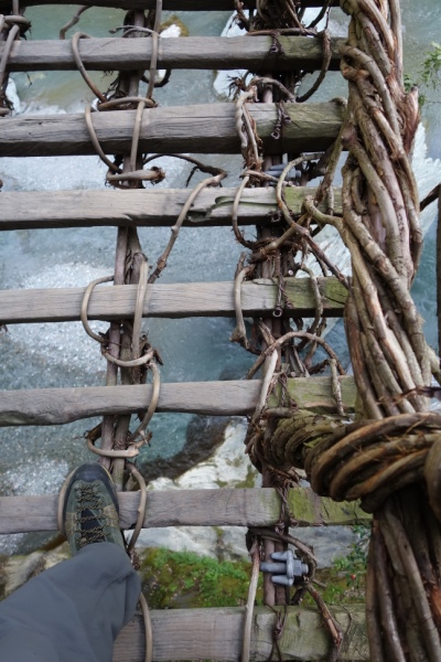 足元を見ると怖い。かずらの中にワイヤーが入っていて切れることはない作りになってました。 |