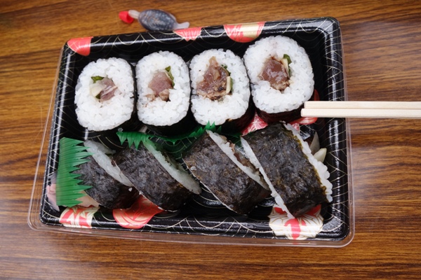 カツオの巻き寿司で軽いお昼ご飯。 |